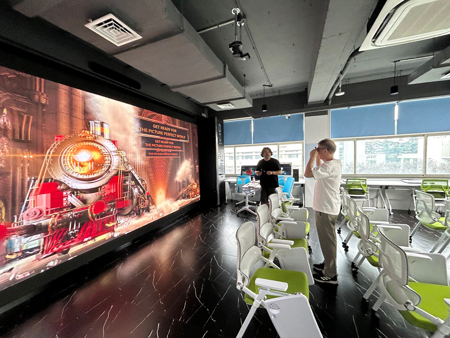 配备虚拟仿真新技术双创培养系统,致力于学科交叉,打造灵活可重构的实验空间,通过沉浸式大屏交互设备,支持多学科团队在此进行协同项目攻关与创新实践。