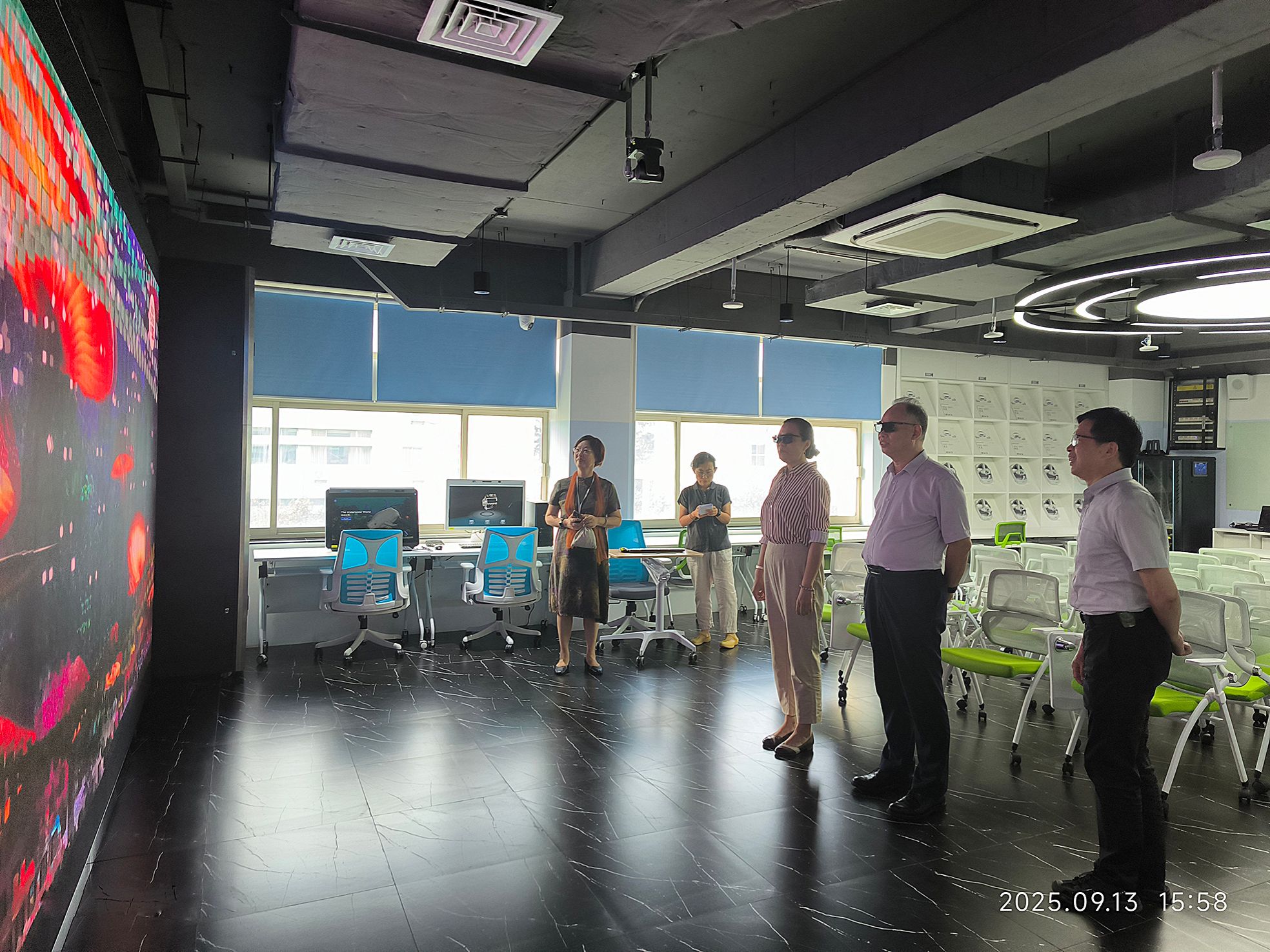 · 9月30日下午,外国语学院党委书记吴蔚,党委副书记、院长尚新,党委副书记、副院长贾小琴,副院长戴朝晖,副院长唐青叶,副院长张建琴等老师,来虚拟仿真实验中心参观研讨。