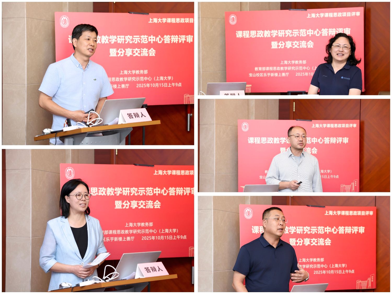 2025年10月15日上午,上海大学举办课程思政教学研究示范中心答辩评审暨分享交流会。上海理工大学马克思主义学院教授、上海市思政课教学名师金瑶梅,上海中医药大学教授、教育部课程思政教学名师张黎声,上海社会科学院研究员、仲礼学者余建华应邀担任评审专家。学院课程思政教学研究中心负责人或成员、学院分中心联络员等与会。教务部副部长、教育部课程思政教学研究示范中心(上海大学)负责人顾晓英主持会议。